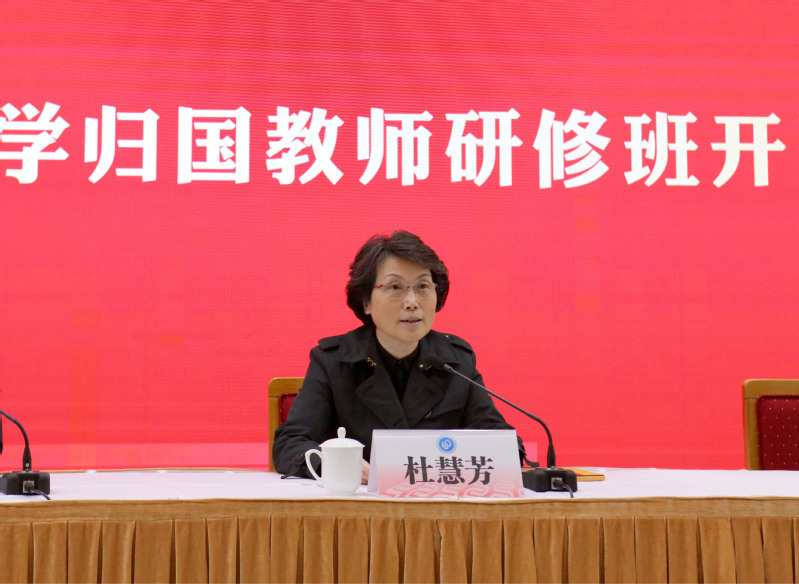 杜慧芳代表学校党委对留学归国教师研修班开班表示祝贺,并作题为“爱国荣校勇担当 踔厉奋发谱新篇”主题报告。她回顾了建校以来,留学归国教师在学校事业发展中发挥的重要作用和取得的积极成果。她指出,学校始终坚持党管人才,深入实施人才强校战略,大力引育、用心培养,努力营造爱才、惜才、用才、留才的良好氛围。2019年起,学校每年举办留学归国教师研修班,旨在更好地引领、团结、服务广大留学归国教师,以新思想指导新实践、以新作为展现新担当。她强调,广大留学归国教师正成为加快建设教育强国、实现高水平科技自立自强的主力军,是学校事业发展的重要力量,并向留学归国教师提出三点希望。