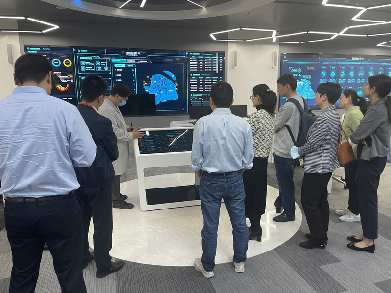 管军伟对商学院一行表示热情欢迎,并带领走访了上海市“一网统管”市域物联网运营中心,详细讲解了运营中心的架构特点和创新理念。他指出,“一网统管”目前已经实现上海全体系覆盖,为16个区、数十个行业提供物联数据和算法服务,运用实时在线数据和智能方法,描绘实时、鲜活的城市画像,并以海量智能算法为支撑,研判城市运行的趋势和规律。