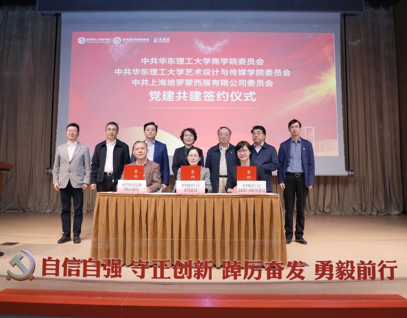5月8日,华东理工大学商学院与上海现代服务业联合会品牌专委会战略合作签约仪式、上海现代服务业百强品牌出海计划启动仪式暨商学院党委、艺术设计与传媒学院党委与培罗蒙西服党委党建共建签约仪式在商学院406举行。上海市人大常委会原副主任、上海现代服务业联合会会长郑惠强,上海现代服务业联合会常务副会长孙建平,副会长陈振鸿、李关德、金建华,华东理工大学党委书记杜慧芳等出席活动。签约仪式由华东理工大学党委常委、副校长阎海峰主持。