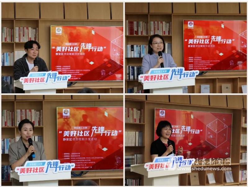 活动中,静安区曹家渡街道党工委副书记尹洁、彭浦镇阳城贵都居民区党总支书记陆欣、石门二路街道党工委副书记周彬慧、北站街道文安居民区党总支书记陆玉红分别介绍了网格治理、楼组党建、街区治理、“社区合伙人”等市级“美好社区 先锋行动”项目,分享了项目的推进思路和推进成果。