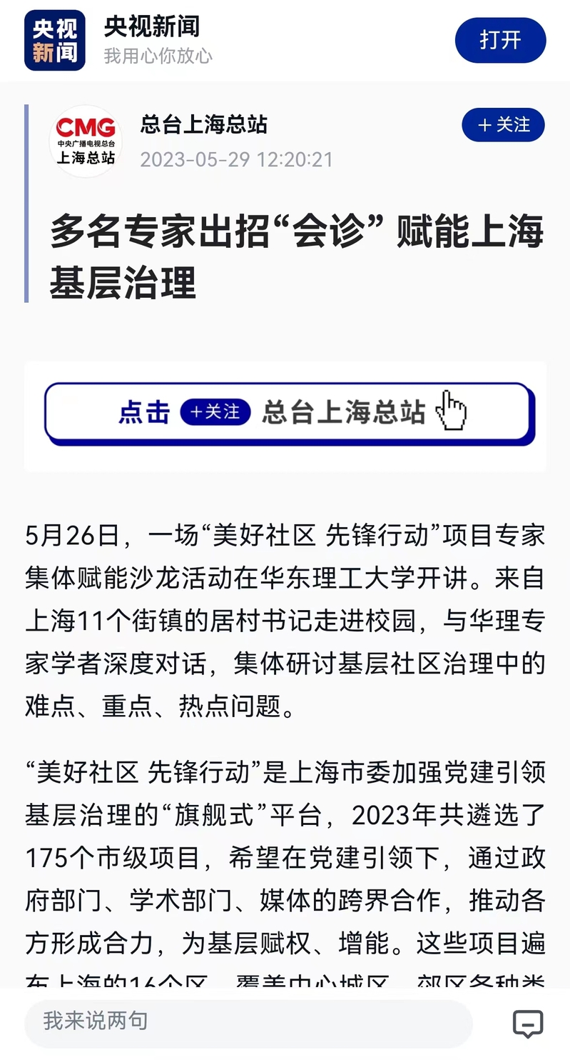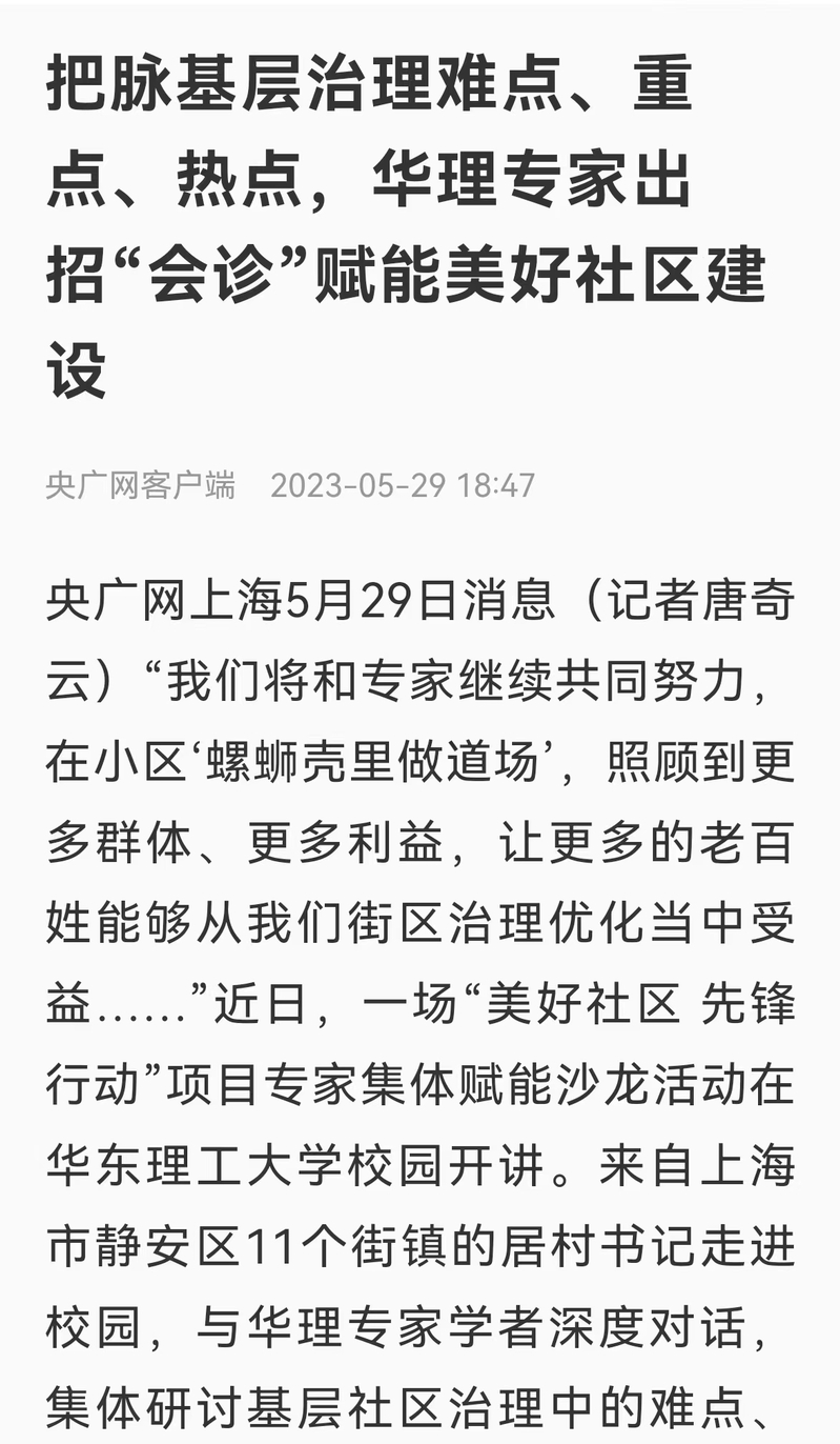【央广网】把脉基层治理难点、重点、热点,华理专家出招“会诊”赋能美好社区建设