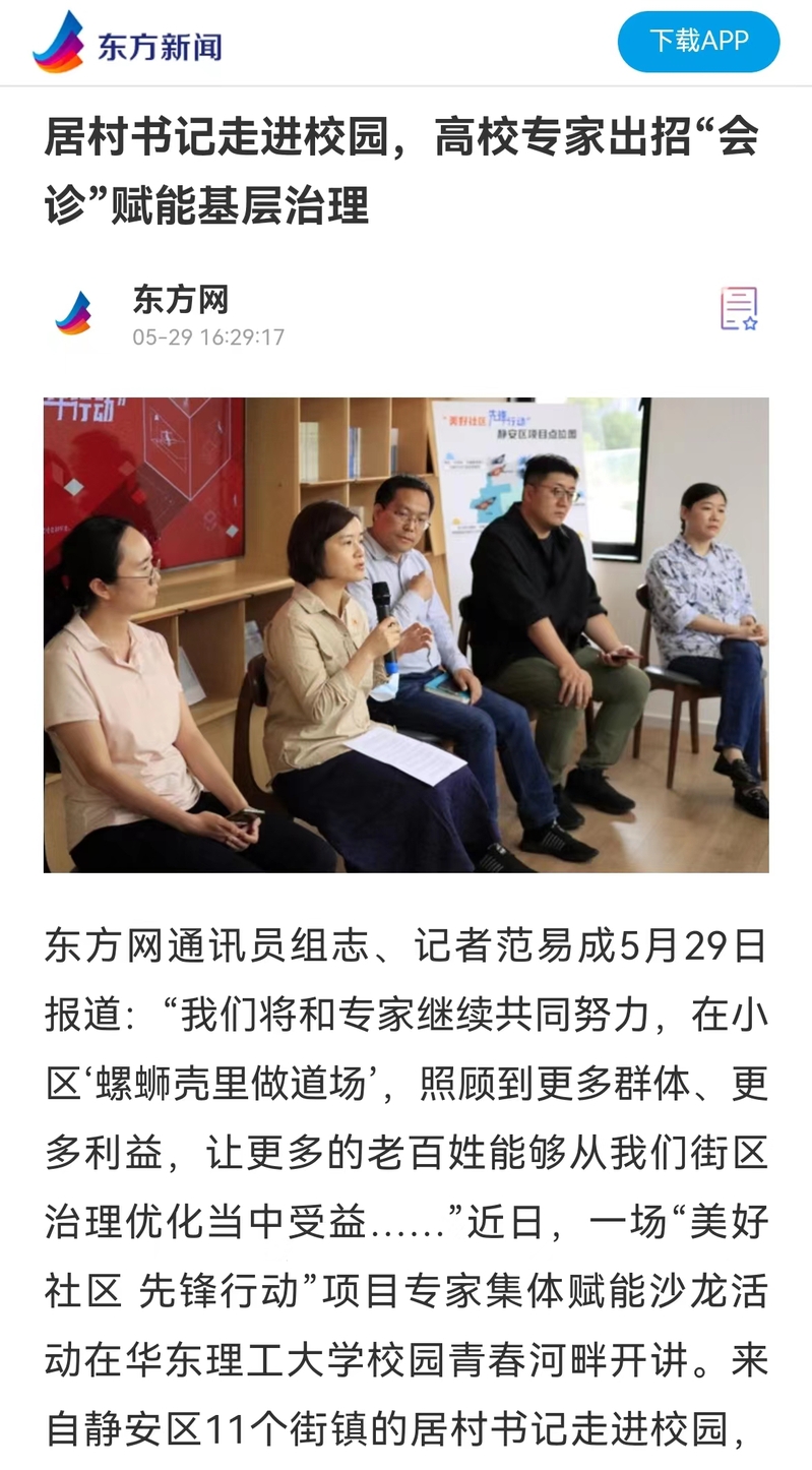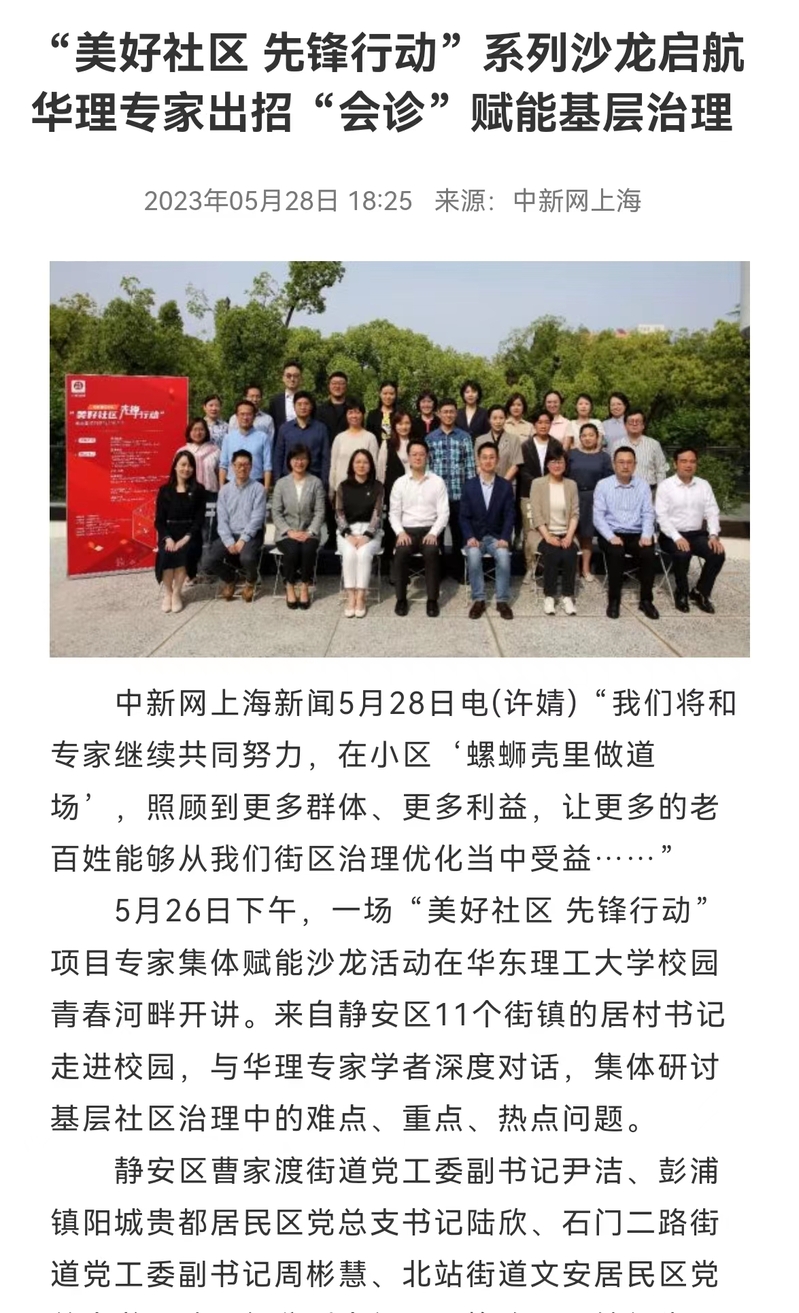 【中国新闻网】“美好社区 先锋行动”系列沙龙启航 华理专家出招“会诊”赋能基层治理