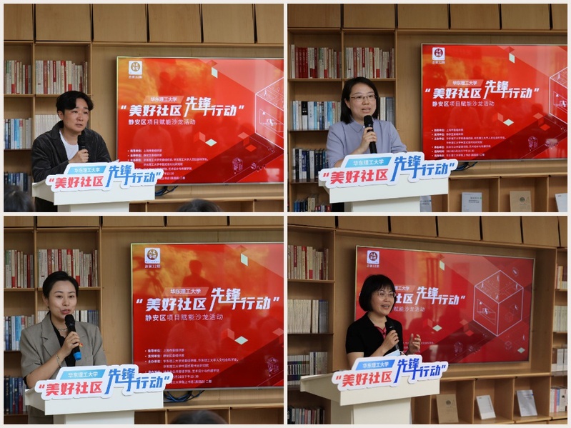 静安区曹家渡街道党工委副书记尹洁、彭浦镇阳城贵都居民区党总支书记陆欣、石门二路街道党工委副书记周彬慧、北站街道文安居民区党总支书记陆玉红分别介绍了网格治理、楼组党建、街区治理、“社区合伙人”等市级“美好社区 先锋行动”项目,分享了项目的推进思路和推进成果。