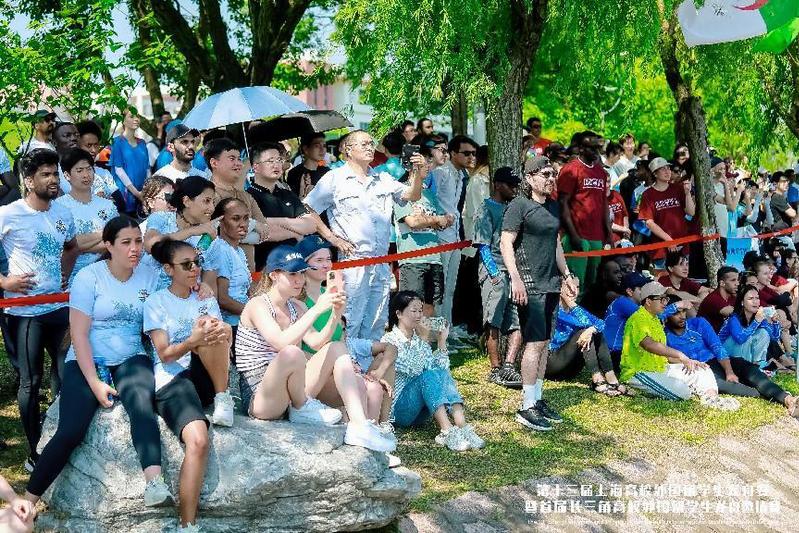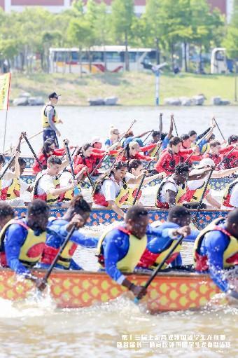 With China’s Dragon Boat Festival approaching, more than 800 international students from 32 universities in the Yangtze River Delta region gathered in Shanghai on Saturday to take part in a dragon boat race.