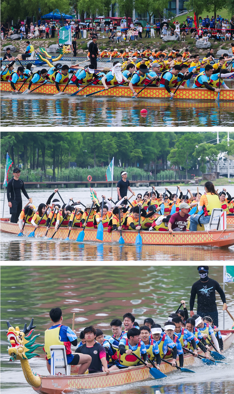 6月11日,商学院“汉酱杯”院庆龙舟赛在奉贤校区通海湖举行,近千名师生以赛促学,在龙舟竞渡中深入了解中华文明的历史,传承拼搏进取、积极向上的民族精神。