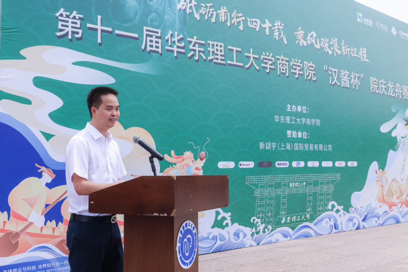 开幕式上,商学院党委副书记兼纪委书记郑庆寰表示,赛龙舟作为端午节重要的节日民俗活动之一,蕴含着龙的传人自强不息、与时俱进、团结奋斗的凝聚力和向心力。今年商学院也将迎来40周年院庆,40年来一代代商院人开拓进取、砥砺前行,不断提升办学水平,累计培养了2万余名优秀人才。她寓意商学院师生校友仿佛组成了一支支乘风破浪的龙舟队,与业界同行、与时代共进,在各行各业中彰显出属于华理商院人的奋斗姿态。她希望龙舟精神能够继续成为推动学院前行的力量,让团队合作激发师生昂扬的斗志。
