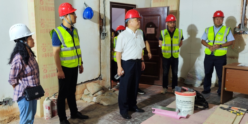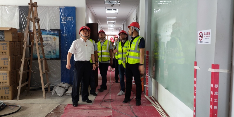 李涛一行先后来到实验七楼一层、实验三楼、物理学院、团结七楼一层等地,详细察看了施工现场。