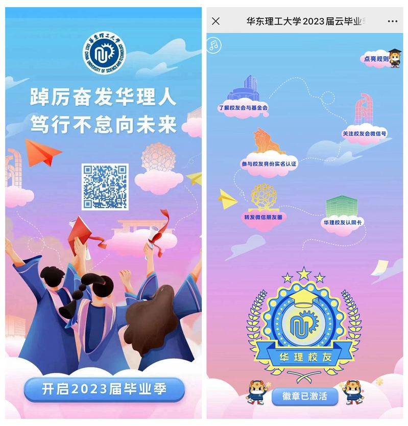 为营造温馨难忘的毕业氛围,激发2023届新校友的校友意识,校友总会精心组织策划了毕业季系列活动,包括班级联络员聘任仪式,“踔厉奋发华理人、笃行不怠向未来”毕业季活动和线下路演等多个环节组成。广大毕业生积极响应,参与总数达到14000余人次。