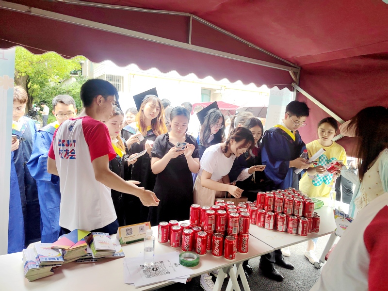 在热闹非凡的线下路演现场,校友会为2023届毕业生带来了丰富多彩的活动,设置了5个路演摊位:毕业季纪念盲盒领取、上海校友会转发关注有礼、华理教育发展基金会路演、华理校友认同卡办理、与“理”合影趣味活动等,介绍了地方校友会、学院校友会、行业校友会“三位一体”的校友工作体系,迎接大家加入到近40万华理校友的大家庭。拍摄毕业照、手印打卡板、冰箱贴盲盒、毕业祝福可乐、纪念明信片……完成一个个“任务”后,毕业生们领取了极富纪念意义的毕业礼物,它们不仅是毕业生青春成长的见证,也是校友会的一片情谊,寄托着对毕业生未来发展的殷切期盼。校友会还和中国银行携手为职场新人们准备了第一张来自母校的“黑金”信用卡,现场便可“一站式”办理,贴心服务赢得了新校友的点赞。