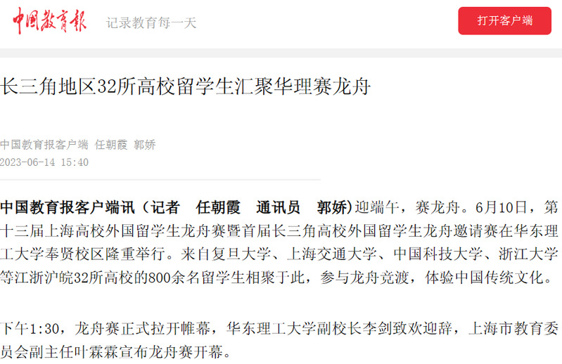 【中国教育报客户端】长三角地区32所高校留学生汇聚华理赛龙舟