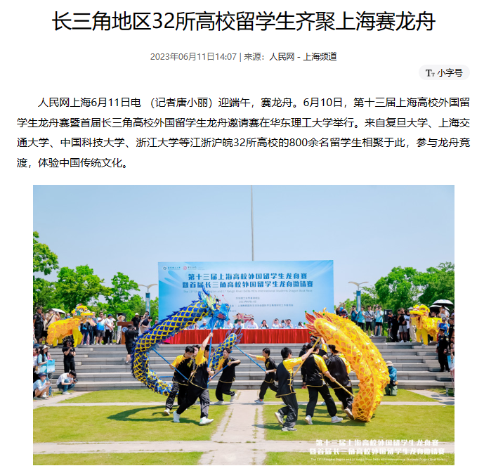 【人民网】长三角地区32所高校留学生齐聚上海赛龙舟