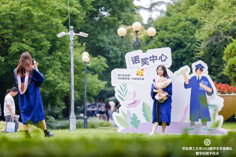 为营造温馨和谐、积极向上的毕业氛围,学工部、研究生院和各学院因地制宜,精心布置校园公共区域及各个典礼会场,细致安排典礼仪式环节。教学楼、实验楼、图书馆、费林加诺贝尔奖科学家联合研究中心、食堂等地标建筑背景板及“勇担时代使命、不负青春韶华”等主题标语,都成为毕业生们拍照“打卡”的新热点。