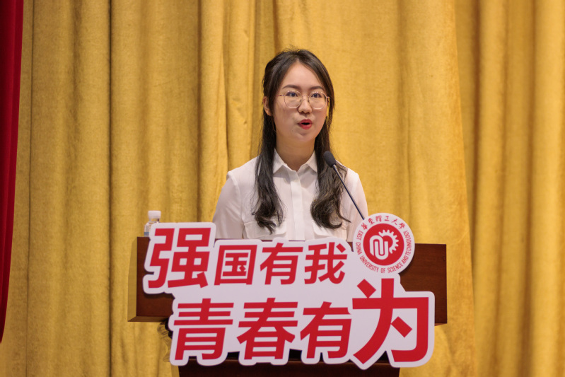 复旦大学学生会执行主席丘润瑄代表兄弟院校学生会致辞。