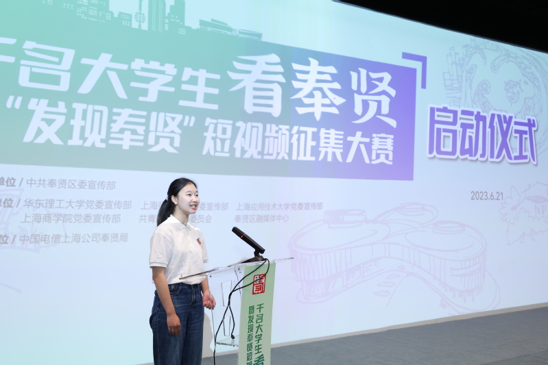 6月21日上午,“千名大学生看奉贤”暨“发现奉贤”短视频征集大赛正式启动,奉贤区委副书记唐晓腾出席启动仪式并讲话。我校党委常委、副校长王慧锋,党委常委、宣传部部长夏江雯以及40余名学生代表等参加相关活动。