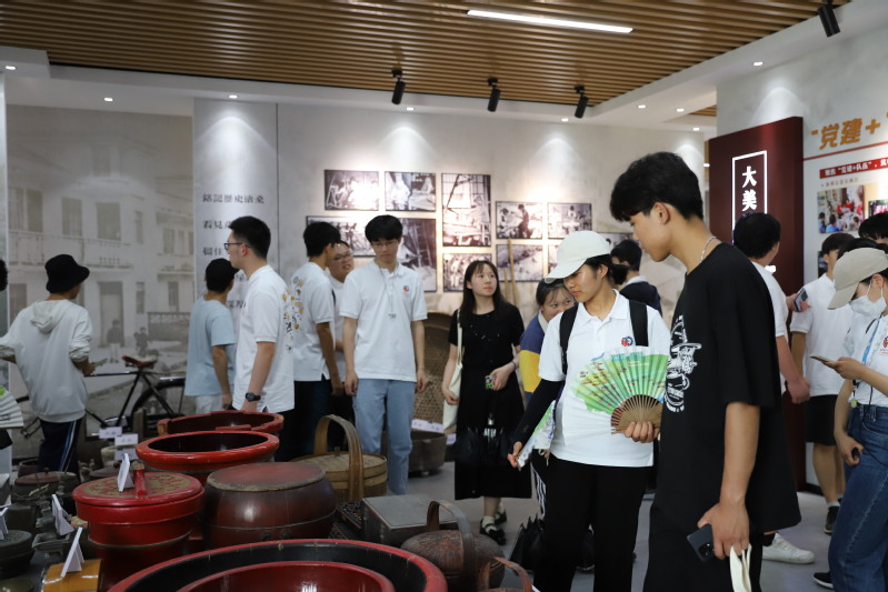 随后,4所高校大学生分成两组进行实地参访。我校师生一行沿着西线,先后“打卡”奉贤区博物馆的“丹甲青文——中国汉字文物精华展”、青年艺术公园、九棵树未来艺术中心、庄行郊野公园、浦秀村史馆等地,一路感受奉贤新城新貌以及乡村振兴带来的无限美景。最后一站,大家在美乐家(中国)日用品公司参观了相关实验室、生产线以及智能仓储系统等,对美丽健康产业在奉贤的蓬勃发展有了更加直观深入的感受。