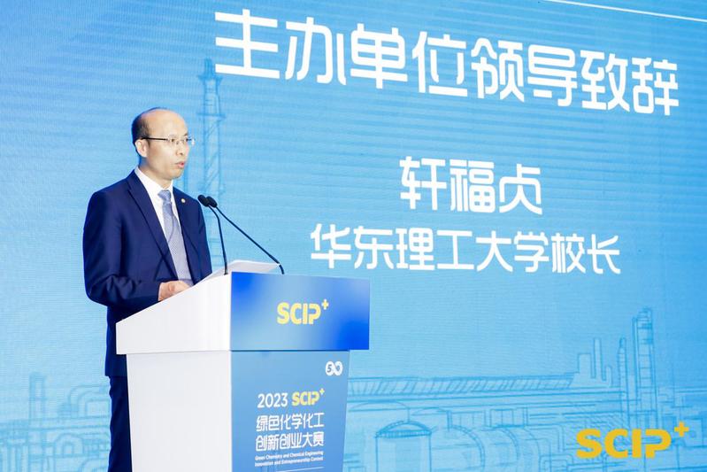 轩福贞在致辞中指出,华东理工大学作为新中国创办的第一所化工特色高等学校和教育部直属的十六所老工科院校之一,建校70多年来,始终以服务国家战略、对接产业需求为导向,走出了一条从“红色工程师”到“创新型工程师”的工程人才自主培养之路,为我国能源化工、生物医药等产业和经济社会发展培养了一大批卓越工程人才。“SCIP+”绿色化学化工创新创业大赛,作为由协会、高校、企业多方合作举办的大赛,是推动教育、科技、人才三大强国战略、培养学生探索性创新性思维品质的重要载体和有力抓手,希望社会各界继续支持大赛,使大赛真正成为化学化工领域师生展示才华、企业发现人才、成果转化落地的重要平台。