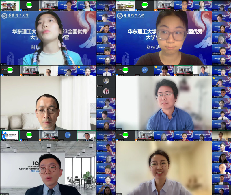 在读研究生代表田文怡、王可青与营员们分享了在校的学习和生活情况。新加坡管理大学杨邦孝法学院教授、澳大利亚新南威尔士大学法学院客座教授王衡教授就“数字化、贸易与可持续发展”,世界贸易组织祝汇检就“Recent Development of International Dispute Settlement”,国际商会争议解决业务北亚地区副主任张安然就“国际仲裁网络化发展:突破创新还是旧酒新瓶”,华东理工大学法学院副教授郑伊彤就“世界银行营商环境评估的方法革新和启示”等主题进行了交流。营员们被精彩的内容吸引,积极与专家学者们互动交流。