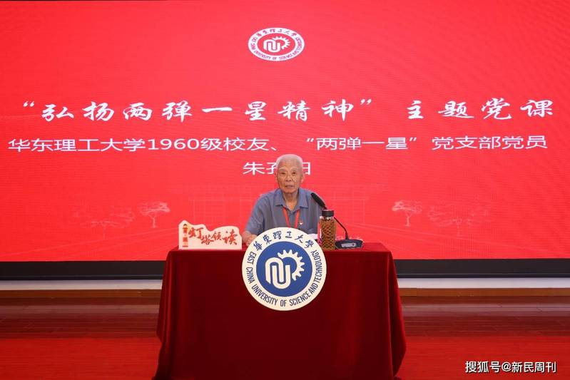 在启动仪式上,同学们首先观看了上钢新村街道“两弹一星”党支部的纪录片《初心》。之后,朱孔阳为同学们上了题为“弘扬‘两弹一星’精神”的沉浸式主题党课。朱孔阳首先讲述了上世纪五六十年代,他在华东理工大学的前身华东化工学院第二无机系刻苦求学,毕业之后响应党和国家的号召,远赴青海基地投身军工研发的人生历程。朱孔阳结合自己的亲身经历,向同学们介绍了新中国成立以来,我国“两弹一星”事业从立项到研发,从第一颗原子弹、氢弹的爆炸成功到第三代、第四代核武器的发展历程,为同学们逐字逐句地解读了以“热爱祖国、无私奉献、自力更生、艰苦奋斗、大力协同、勇于登攀”为内容的“两弹一星”精神的丰富内涵。党课最后,朱孔阳寄语同学们:“中国式现代化建设要有青年人来接班,年轻人责任重大,要学好本领,才能更好地为社会主义现代化建设服务。”