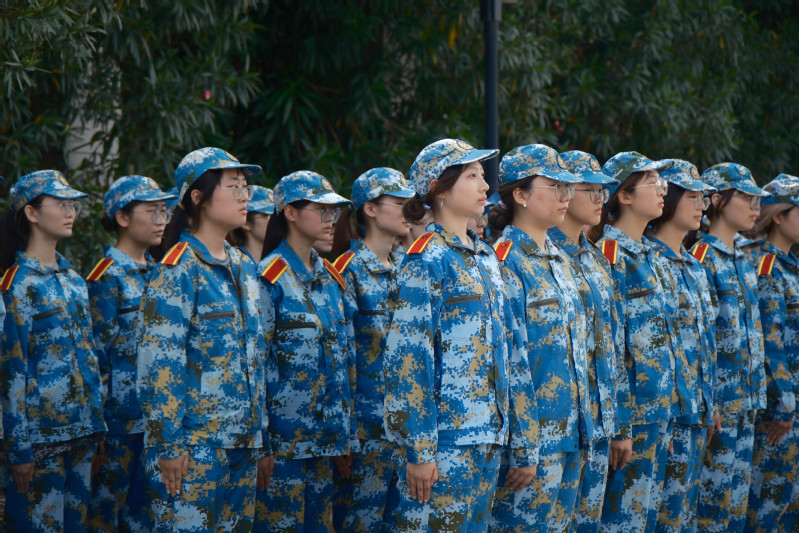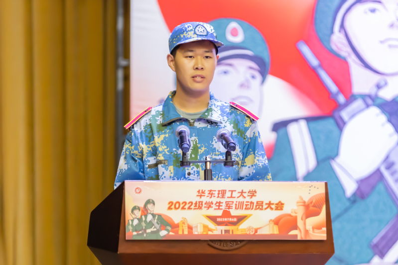 军训团副团长龚向明宣读了军训团营长、教导员名单。外语学院英语2202班张帅同学代表全体参训学生发言,表达了要坚决完成军训任务、磨砺坚韧意志,在军训中促进自强魂与强国魂相互融合,铸就不悔青春。