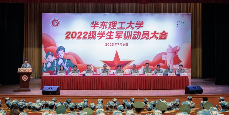 7月6日晚上,华东理工大学2022级学生军训动员大会在奉贤校区大学生活动中心剧场举行。军训团政委、副校长王慧锋,军训团团长、武警上海市总队机动第一支队支队长出席动员大会。动员大会由军训团副政委、党委学生工作部(处)部(处)长、武装部部长崔姗姗主持。