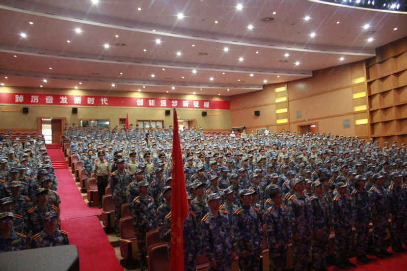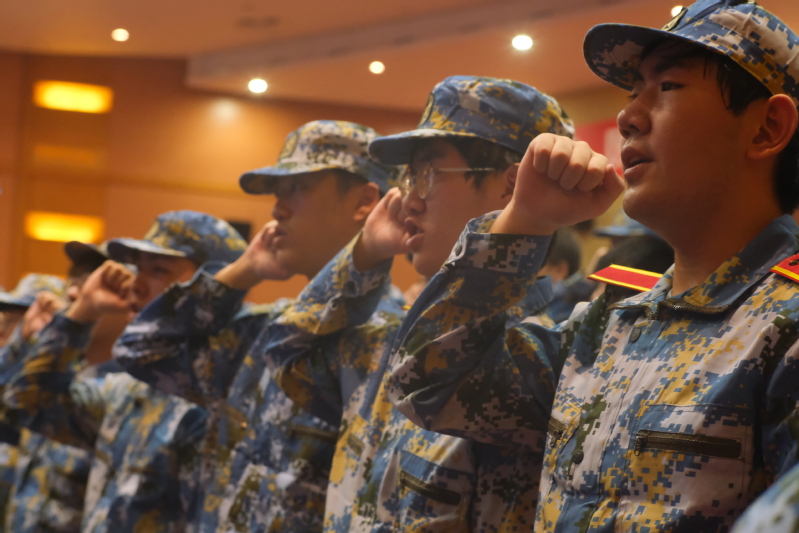动员会上,所有参训学生在军训团副政委王寅申的带领下进行宣誓。