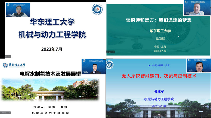 张显程在“谈谈诗和远方:我们追逐的梦想”的报告中,与同学们分享了自己的科研经历和研究成果,激励大家珍惜当下、提升自我、追求梦想。杨强在“电解水制氢及发展展望”的报告中,介绍了电解水制氢的意义及优势,就电解水制氢的发展形势提出展望。易建军在“无人系统中的智能感知、决策与控制技术”的报告中,对该领域的发展现状进行了简要阐述,并对未来发展方向进行了展望。陈浩峰教授作“基于数据驱动的先进压力容器设计”报告,朱明亮教授作“航天结构轻量化与增材制造”报告。教授们的精彩报告引起了营员们的极大兴趣,大家认真倾听,踊跃发言,气氛活跃。