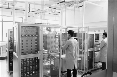 华东理工大学化工学院科研人员在做甲烷干重整催化反应动力学实验。