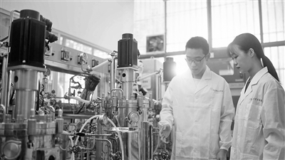 华东理工大学生物工程学院学生在生物反应器工程国家重点实验室开展生物过程优化与放大研究实验。
