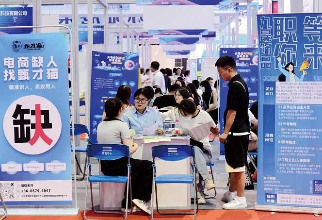 上图:2023年6月,2023年全国大中城市巡回招聘高校毕业生义乌站(电商专场)活动,在义乌国际博览中心举行,吸引全国众多电商人才与企业前来参加“双向选择”。