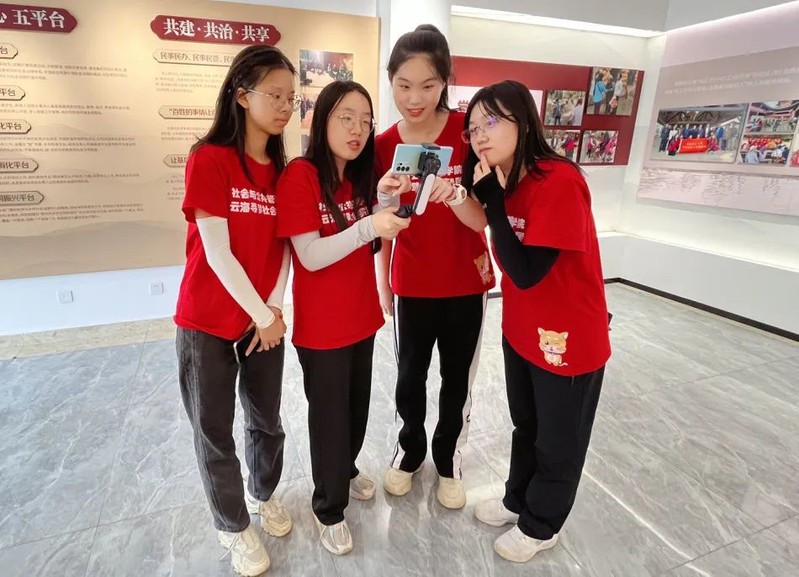 学生在云南寻甸塘子街道坝者村乡村振兴记录展拍摄Vlog