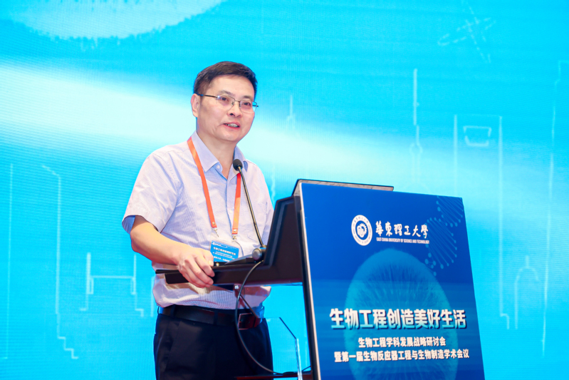 轩福贞代表主办单位致辞。他表示,在合成生物学和生物医药新产业快速发展的今天,专家学者们齐聚上海,共同探讨生物工程学科的发展战略和生物反应器工程与生物制造的重要前沿科学问题,交流前沿科学理念和创新思想,推动生物工程学科可持续发展的未来趋势,为交流与共享学术成果搭建了桥梁。华东理工大学在生物工程领域办学历史悠久,1955年在国内最早成立抗生素制造工学专业,1991年获批全国首个生物化工博士点,2015年获批全国首个“生物工程”博士学位授权一级学科。目前,学校在生物制造领域汇聚了众多国内外专家学者,与国内80多所生物制药、食品加工、生物材料和生物农药领军企业开展了长期的科研合作,一批行业共性、关键技术的大规模产业化推广应用产生了重大的经济和社会效益。希望以本次会议为契机,搭建起更加广泛的学科交融和多维度切入的产学研融汇创新平台,与各兄弟院校、同行专家一道,共同为中国生物产业的发展作出新的更大的贡献。