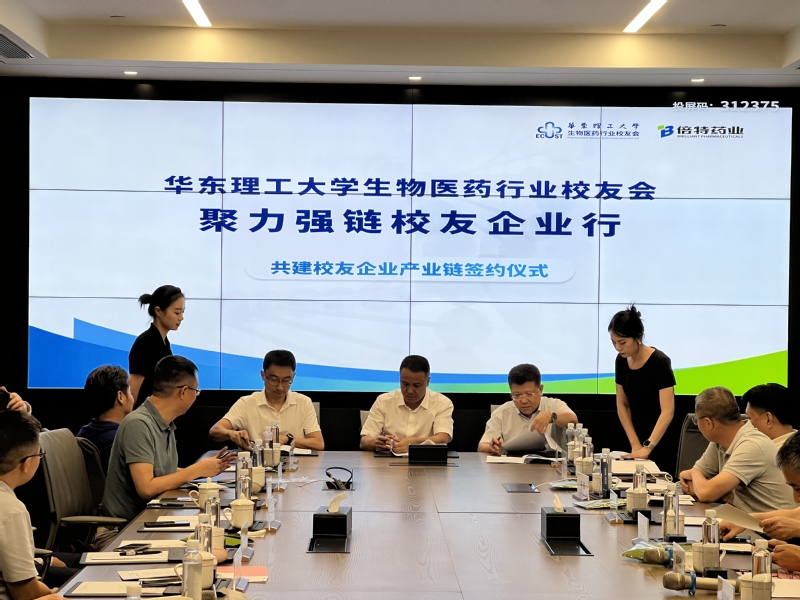 活动交流会现场,在华理生物医药行业校友会的推动下,14家校友企业签署了《以倍特药业、雅途生物、通德药业为中心的校友企业产业链建设战略合作协议》,旨在促进各方建立信息、资源共享机制,加强各方在业务领域的优势互补和全方位合作,打造华理生物医药行业校友企业产业链,实现合作共赢。