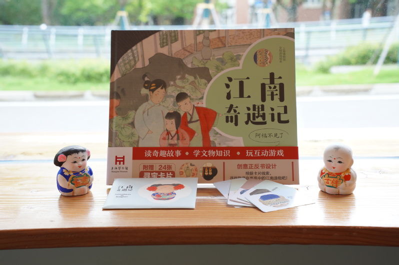 《江南奇遇记》由华东理工大学出版社出版,是“上海博物馆文物游戏绘本”系列中的一本。上海博物馆特邀上海书画院画家徐旭峰绘制撰写,以“江南造物”为主题,融合了众多江南造物工艺与江南场景。该绘本用无锡惠山泥人“大阿福”为主角原型,以颇具新意的正反书形式讲述了阿福被主人小满弄丢后寻找回家之路的故事。