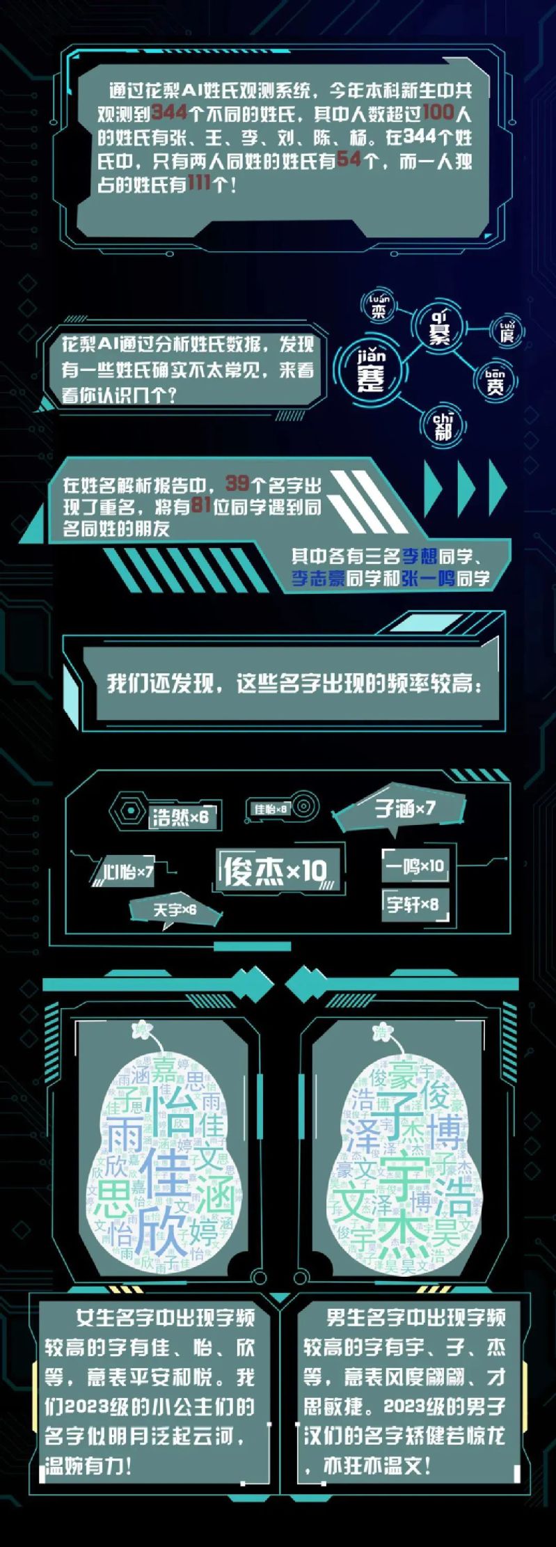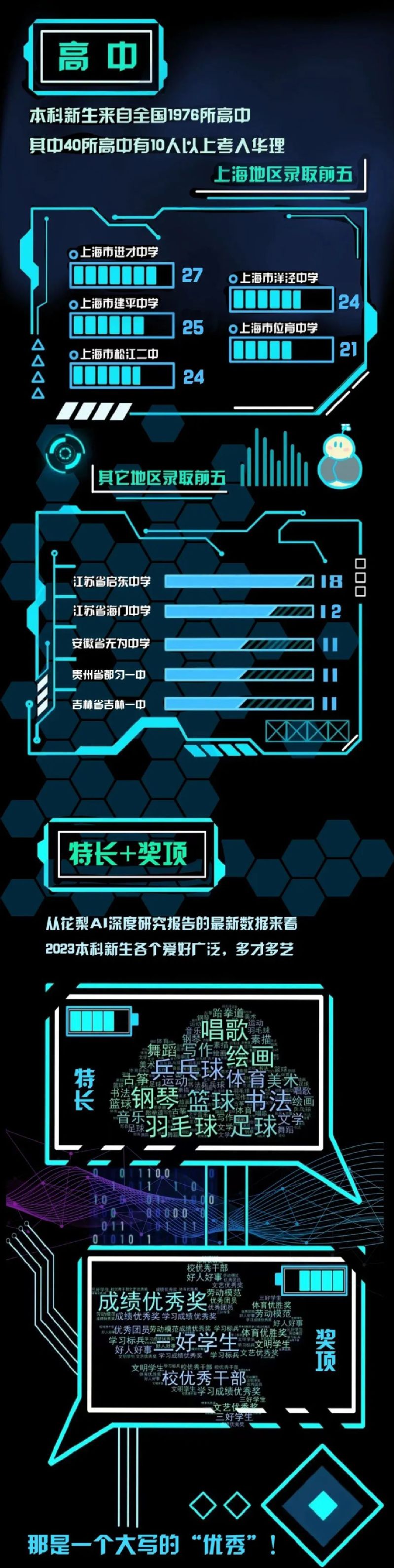 一年一度新生开学季开始啦,一大批“小萌新”陆续进入沪上各大高校开始一段新的人生旅程。2023级本科新生都有哪些爱好?哪个姓氏人数多?同名同姓的同学有多少?上海交通大学、华东理工大学、上海戏剧学院、上海海洋大学、上海电力大学、上海大学、上海中医药大学、上海第二工业大学发布本科新生大数据,一起来看看吧↓