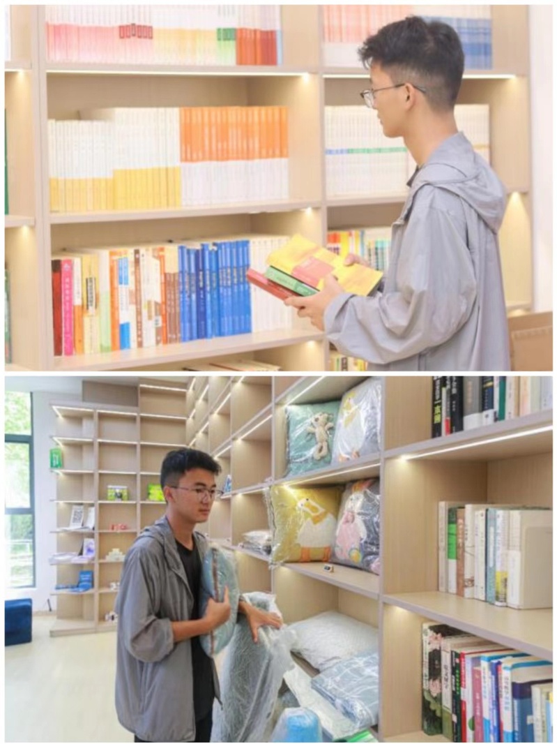 新生在爱心屋换购教材、被褥等学习和生活用品