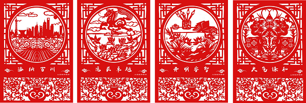 当然,王桐予的努力远不止于此。疫情期间,她曾与家人耗时两天,共同创作3幅抗疫主题剪纸作品参加上海市抗疫主题展,作品入选《中国剪纸精品集》;通过“小花梨”微信公众号、“通海茶叙”讲坛等平台,她向同学们讲授剪纸文化,录制的“居家学剪纸”小视频获“学习强国”平台发布;她还参加2020青少年高校科学营华理分营的直播活动,成为中小学生的剪纸小老师;参加了“基于校名纪念品的文化设计与开发”的“大创”项目,设计出十二生肖剪纸明信片等文创产品,并融合校园文化活动,设计了10余套“小花梨”形象、华理标志性建筑等剪纸图样,献礼华理70周年校庆。