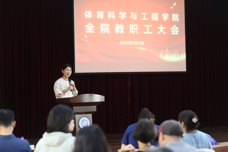 9月5日下午,体育学院在徐汇校区八角亭召开全院教职工大会,深入学习贯彻习近平新时代中国特色社会主义思想,以主题教育促内涵发展,开展教职工理论学习,并就下半年学院重点工作进行部署。学院党委书记徐文方,党委副书记、院长叶心明,副院长韩骏及全院教职工参加会议。会议由学院党委副书记吴婷主持。