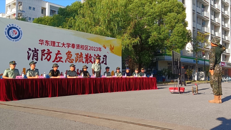 为进一步加强我校消防安全工作,普及消防安全知识,营造良好的消防安全环境,有效提升师生消防安全素质和自防自救能力,按照学校2023年秋季入学新生军训总体计划安排,9月10日下午,学校在奉贤校区举行2023级本科新生消防应急疏散演习,4000多名本科新生参加了此次演习活动。校党委副书记、军训团政委沈海涛,以及军训团团部领导参加了演习。上海市奉贤区消防救援支队、奉贤公安分局高校派出所派员指导演习。