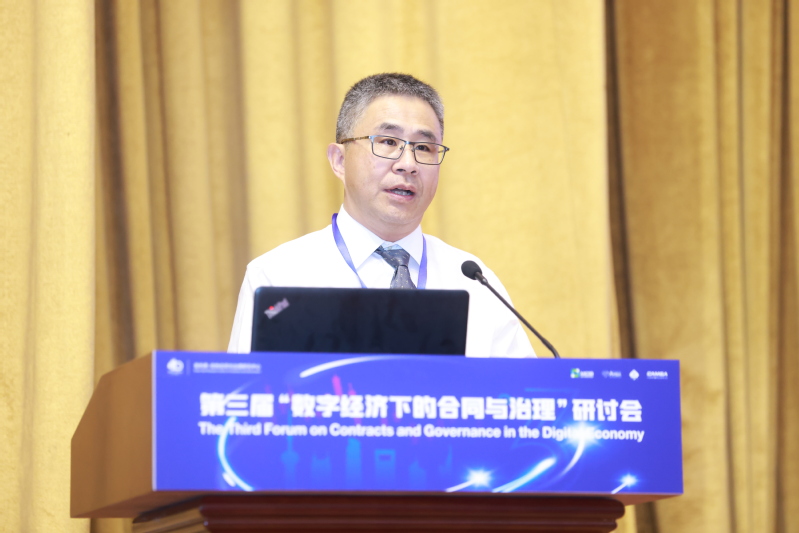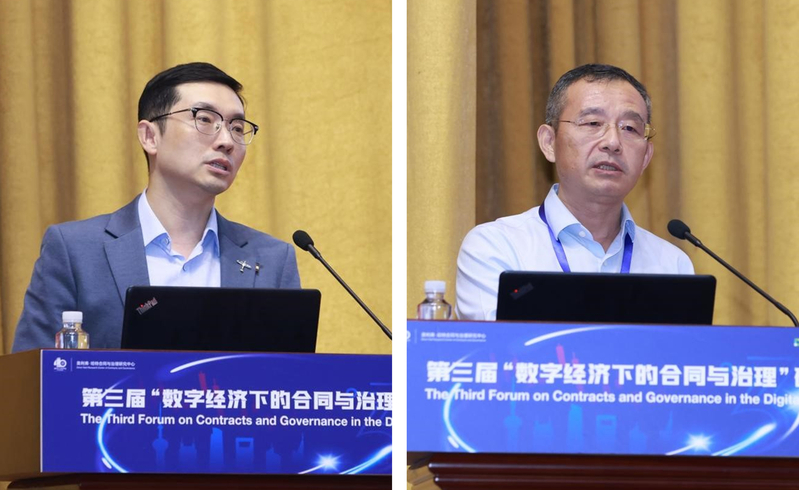 嘉宾演讲环节中,交银金融科技有限公司副总裁冯晓明以“金融科技与可持续发展”为主题,围绕企业如何积极践行ESG社会责任,介绍了交银集团在绿色金融、无纸化建设和改善社会福祉三个方面付出的努力和收获的成果;上海临港经济发展(集团)有限公司副总裁孙萌以“数智创新 构筑数字产业新生态”为主题分享了临港集团的数字化转型的做法和经验。奥利弗·哈特合同与治理研究中心执行主任吴玉鸣主持嘉宾演讲环节。