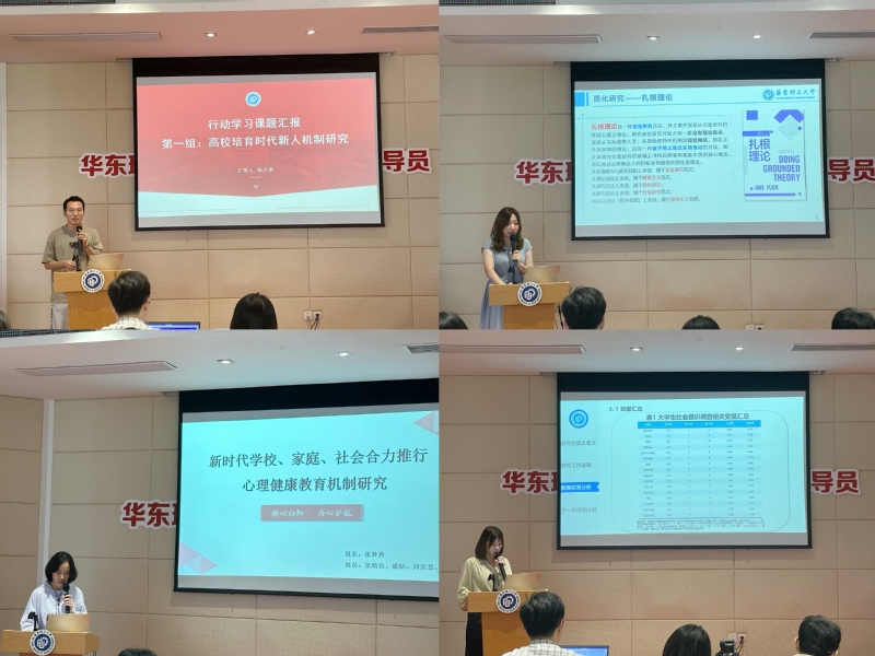 在之后的“行动学习”骨干辅导员研修营阶段汇报交流会上,4个研修小组系统梳理展示了自5月以来的研究进展,重点汇报了调研情况和数据分析结果,进一步明确了下一步研究计划。同时,各小组也进行了互评打分,营员们结合学习到的理论知识,聚焦后续的实践措施和调研报告撰写等内容进行了交流。
