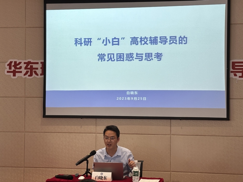 上海高校辅导员论坛征文活动一等奖获得者、上海大学组织人事部党校教学管理岗主管白晓东以“科研‘小白’高校辅导员的常见困惑与思考”为主题,从科研选题、论文撰写准备、论文投稿与发表历程等方面,生动讲授了科学研究的具体方法与创新思路,提出辅导员要善于通过学习文件把握研究重点和热点,在做好学生工作实践的同时增加研究的鲜活感,鼓励参训营员努力做到“写起来”“写出来”“写下去”的3个关键步骤。在互动交流环节,白晓东从标题、框架、研究视角和研究方法等角度,解读了高质量论文的组成要素。