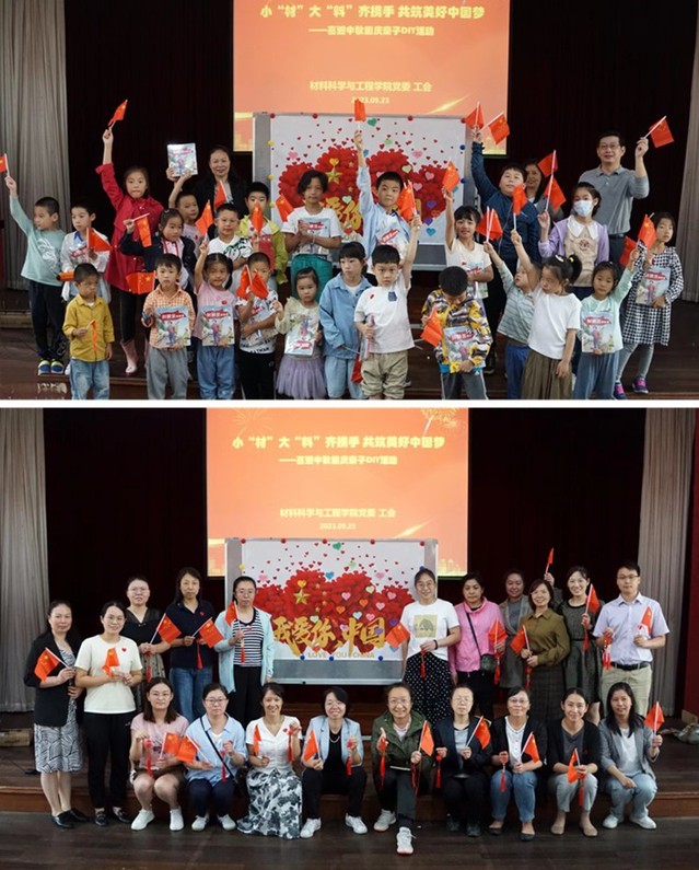 9月23日,材料学院党委和工会在八角亭二楼联合举办了主题为“小‘材’大‘料’齐携手 共筑美好中国梦”的“华二代”亲子DIY活动,喜迎中秋佳节和新中国成立74周年。活动利用材料学院的学科资源,通过微讲座、亲子DIY和寄语祝福祖国等环节,将爱国主义教育与材料科普有机融合,打造材料学院工会“一家一品一特色”活动。全校30个亲子家庭冒雨踊跃参加。