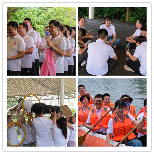 活动伊始,参训教职工在融冰活动“报数成团”中迅速熟悉起来,队员之间形成了强烈的集体荣誉感和团队凝聚力,为后续活动打下了坚实的基础。在“穿越电网”活动中,每队队员以高度的配合能力和密切的协作能力,在身体不触碰“电网”的情况下,从铁圈一侧穿越到另外一侧,顺利完成了该项目的挑战。最后,所有队员以整齐划一的动作和团结合作的精神,在轻松愉快的氛围中,完成了“龙舟竞渡”的项目挑战。