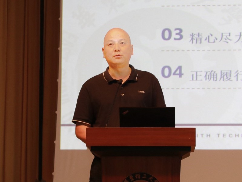 商学院党委副书记兼纪委书记郑庆寰作师德师风专题辅导报告,带领学习了习近平总书记给全国优秀教师代表致信以及给东北大学全体师生的回信精神、关于教师队伍建设的重要讲话精神以及党的二十大对加强师德师风建设作出的重要部署,并对新时代高校师德师风建设的重要制度文件作详细解读。以案为鉴,敲响警钟,郑庆寰着重列举了高校教师违反十项准则的典型案例,提醒督促全体教职工要时刻牢记谨言慎行,涵养高尚师德,努力做“经师”和“人师”的统一者。