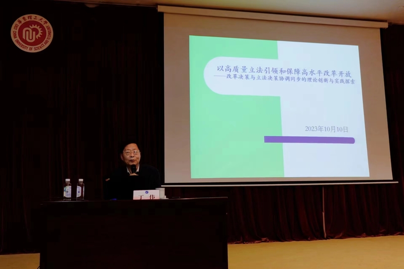 讲座伊始,丁伟提出“以高质量立法引领和保障高水平改革开放是全面深化改革、全面依法治国新时代立法工作的主旋律,其核心是立法先行,发挥立法的引领和保障作用,实现立法决策与改革决策协调同步。”