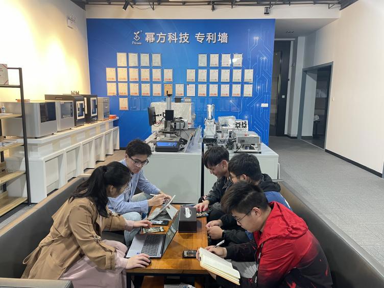 2019年,张震老师博士毕业入职华理后,就投入指导学生的科创研究,聚焦于柔性电子增材制造领域。制备柔性电路的传统方式是“减材制造”,即通过刻蚀柔性覆铜板来制备柔性电路,前后10余道工序,不仅工期长达一星期,而且原料利用率小于10%,污染、浪费都很严重。那么,是不是能够像印刷一样,把电路“印”在基材上呢?张震老师带领团队选取了这种“柔性电子增材制造”的路径。