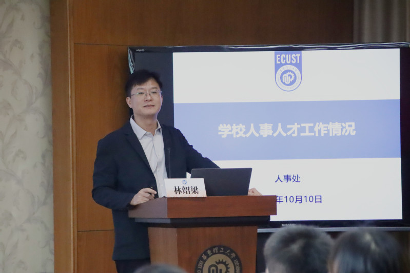 林绍梁作“高校教师成长与发展”主题讲座。他从多个方面深入介绍了学校的人才人事工作情况,帮助新进教职工了解学校人才人事政策,进一步转换角色,顺利走上工作岗位。