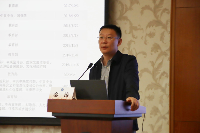 最后,秦涛以“法治思维与高校教师的工作与生活”为题进行了讲座分享。他指出,在法治新时代,作为一名高校教师不仅要有精通专业知识的技能,还要具有严谨的法治思维,从而更好地服务于高等教育事业,培养出全方位的高素质人才。