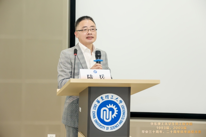 图片说明:生物工程学院校友会名誉理事长陆兵主持大会