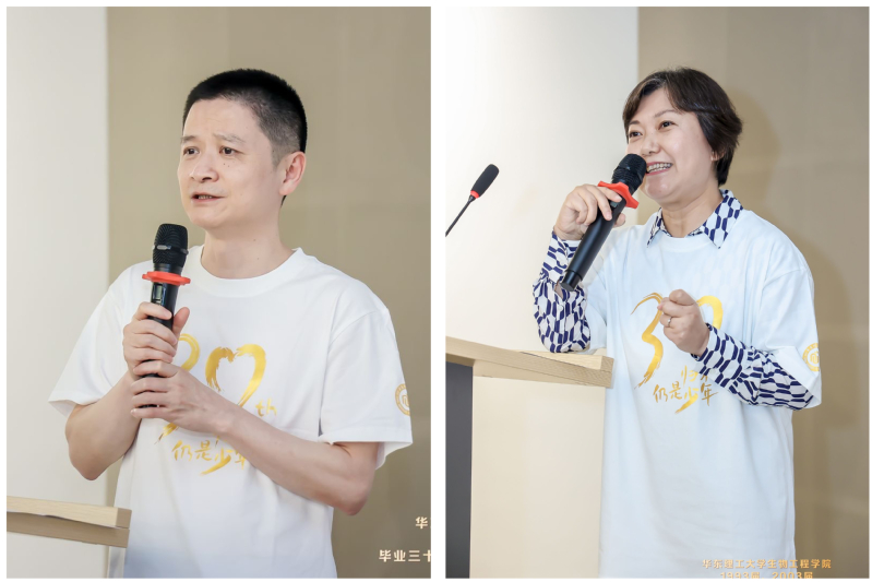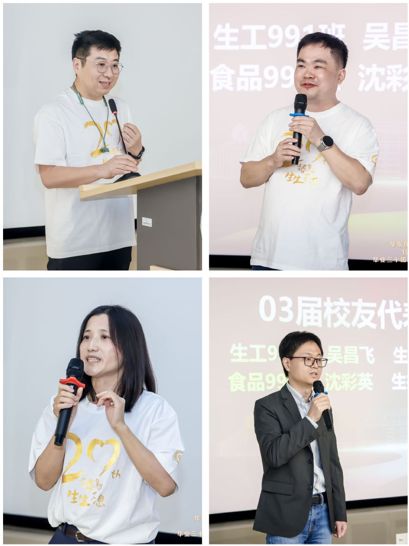 阔别20年、30年,今日在母校重逢、相聚,校友们都无比喜悦和激动。1993届校友代表丁万和、沈晴,2003届校友代表陈志、吴昌飞、沈彩英、徐敏纷纷发表感言。1993届校友徐笑一、何强、罗萍、吴懿文代表海外校友,通过远程视频与大会现场互动。校友代表们回忆起校园往事,讲述自己的发展经历,表达了对母校的情感及对老师的感谢,并对母校送上诚挚的祝福,会场不时爆发出阵阵欢乐的笑声和热烈的掌声。